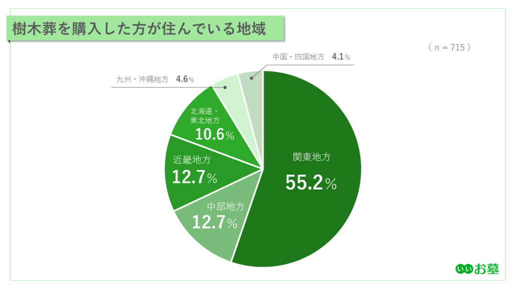 - 樹木葬の購入者の居住エリアは関東が55%で最多、他地域へも選択が広がる